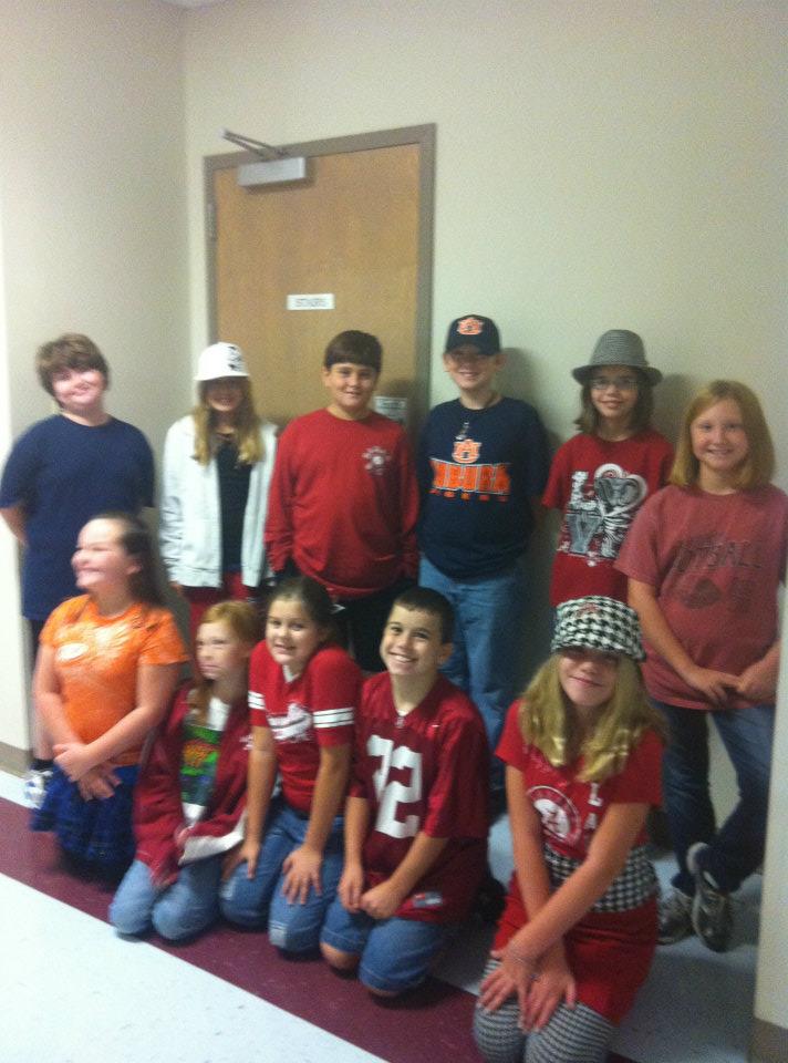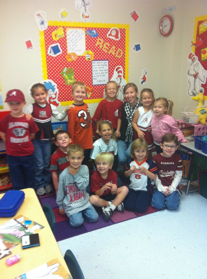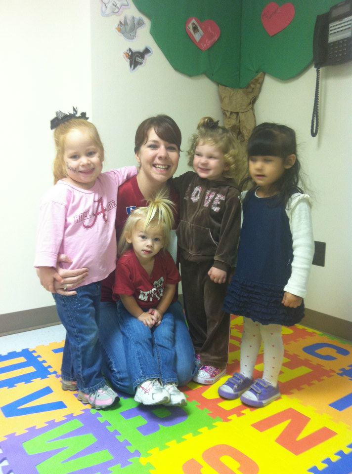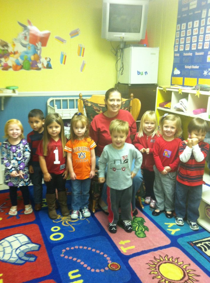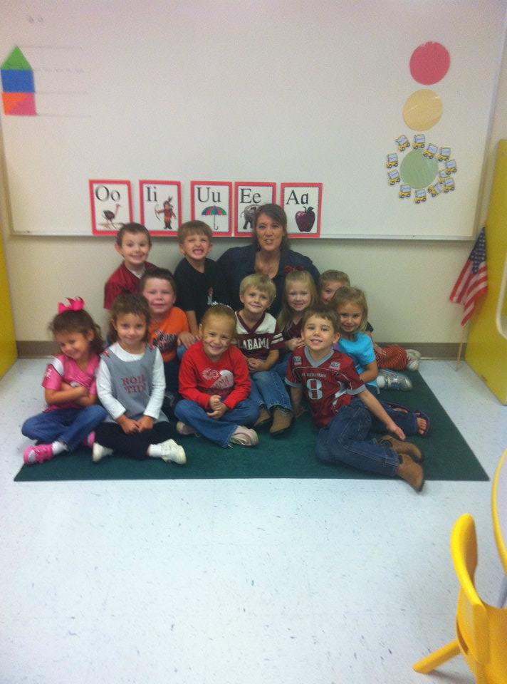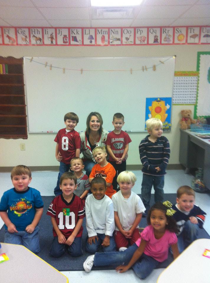 Hand stitched Quilt featuring each child's handprints. This special quilt was stitched by Mrs. Mann's sister Barbara Kegal.